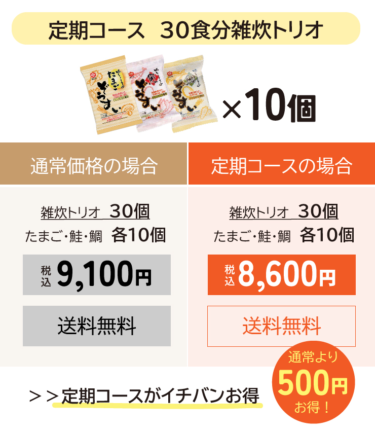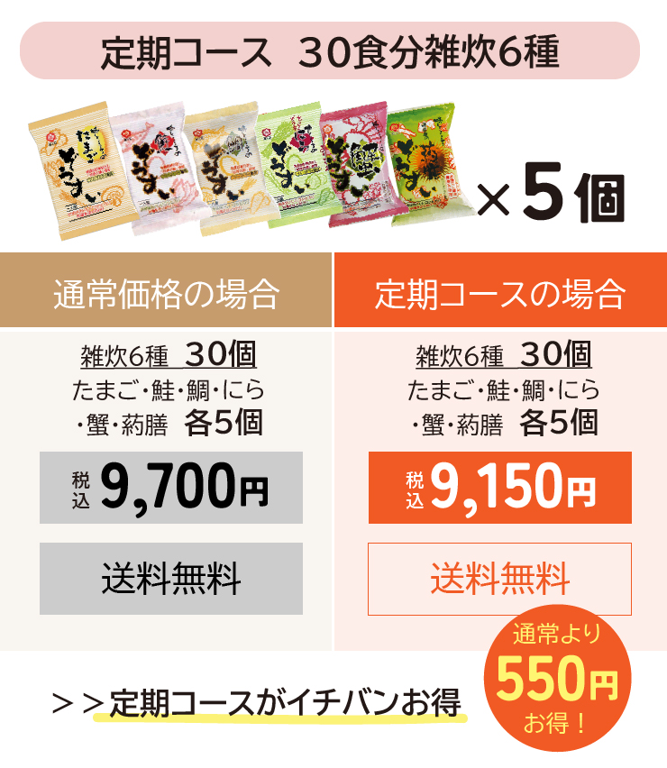 ・定期コース特典で雑炊を一番お得にご購入いただけます。
